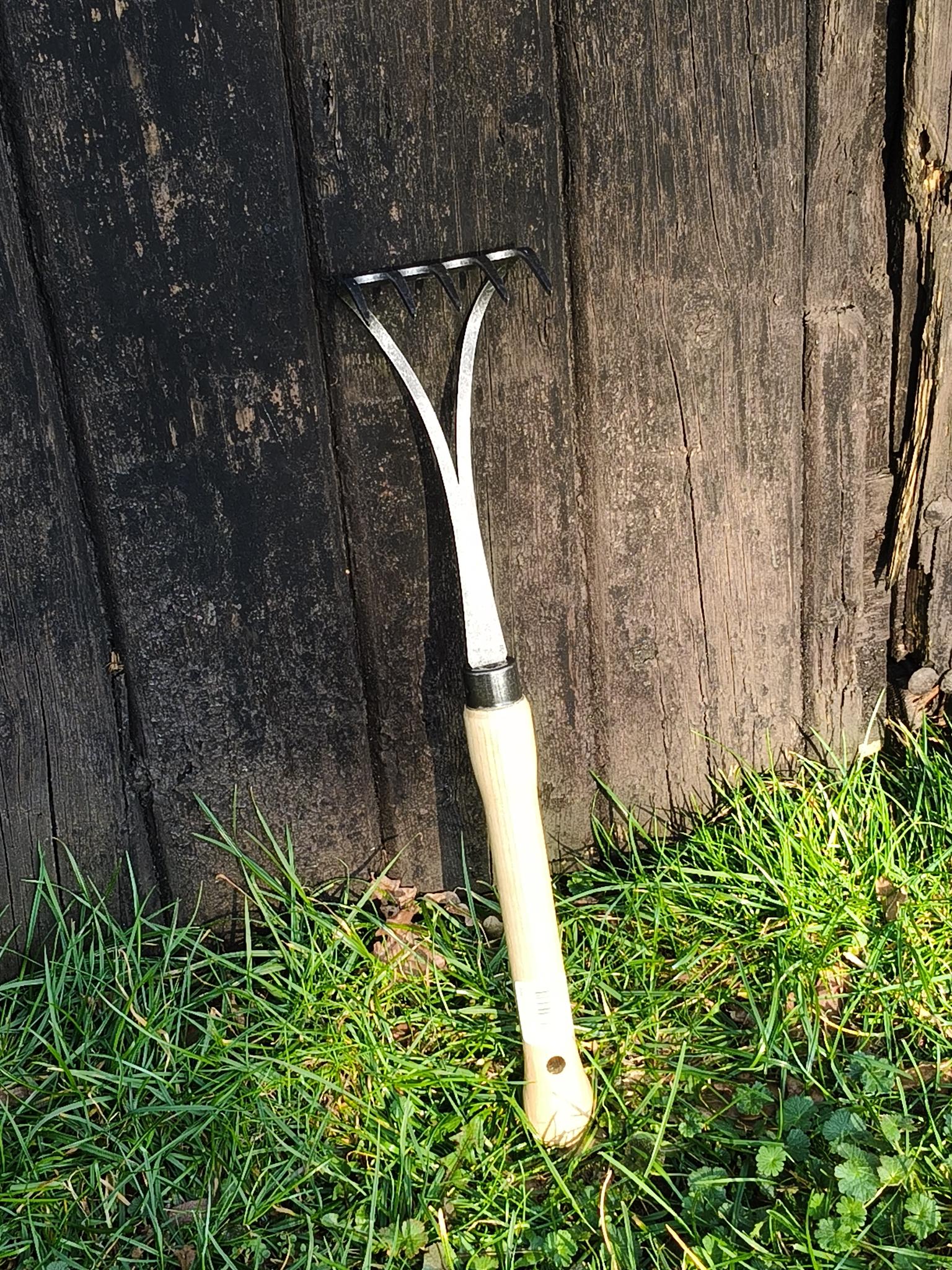 De 5-tands handhark met een essen houten knopsteel van 25 cm is een essentieel gereedschap voor precisiewerk in borders, bloembakken en op verhoogde plantenbedden. Dankzij de compacte steel en de vijf stevige tanden is deze hark ideaal voor het losmaken van de bodem en het verwijderen van onkruid op plekken waar een steel op volledige lengte te onhandig is.